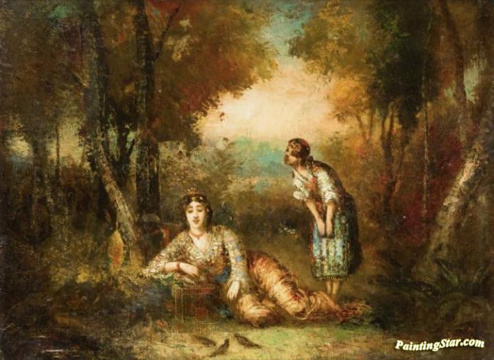 Odalisque with her Bird Cage, Art Painting by Frédéric Borgella