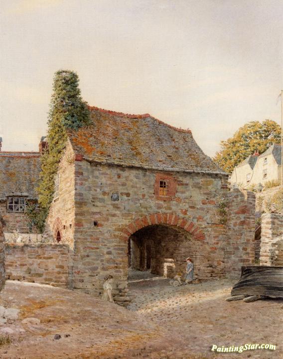 Old buildings at Kingswear in Devon, Art Painting by George Price Boyce