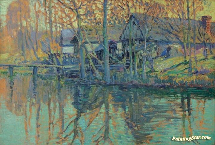 Old Houses by a River, Art Painting by Václav Radimský
