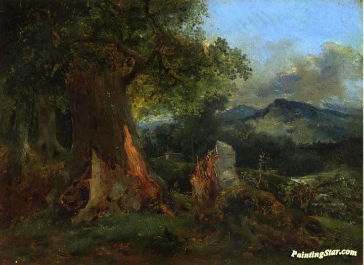 Old Oak Tree and Rotting Trunk, Art Painting by Théodore Rousseau