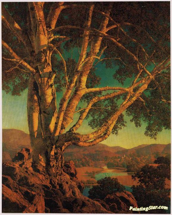 Old White Birch, Art Painting by Maxfield Parrish