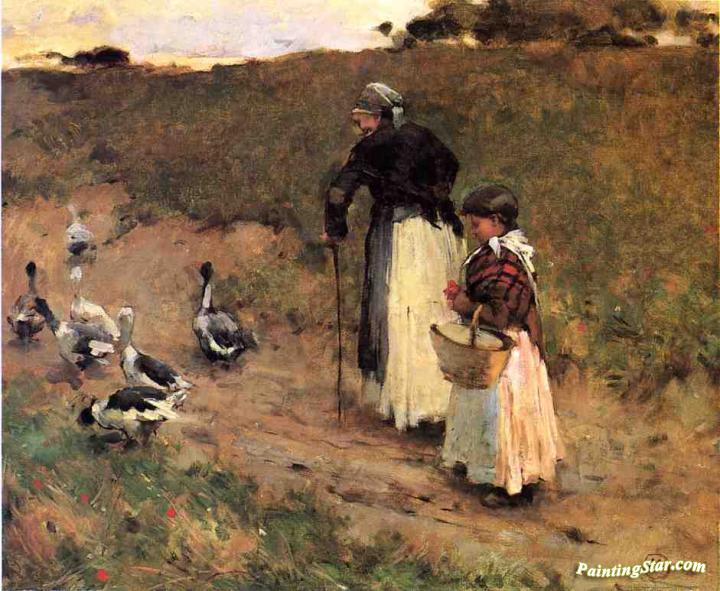 Old Woman with Child and Goose, Art Painting by Willard Leroy Metcalf