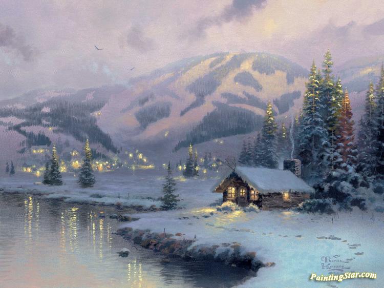 Olympic Mountain Evening, Art Painting by Thomas Kinkade