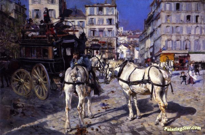 Omnibus in the Place Pigalle, Art Painting by Giovanni Boldini
