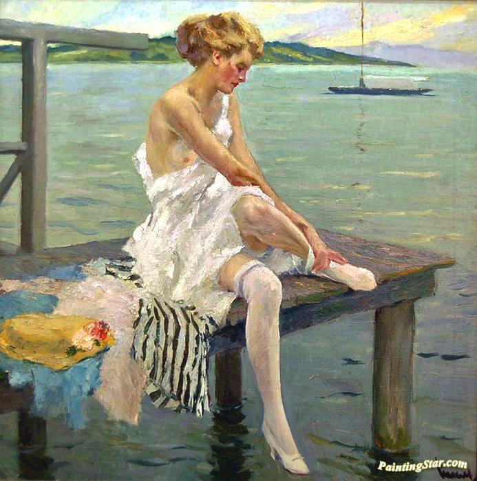 On A Pier, Art Painting by Edward Cucuel