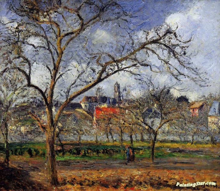 On Orchard in Pontoise in Winter, Art Painting by Camille Pissarro