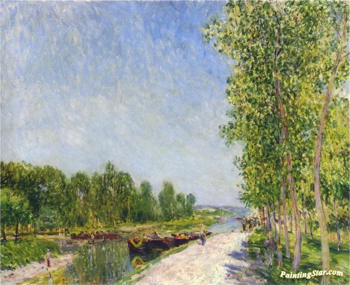 On the Banks of the Loing Canal, Art Painting by Alfred Sisley