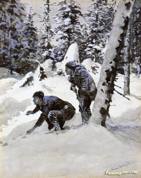 On the Caribou Tracks, Art Painting by Frederic Remington