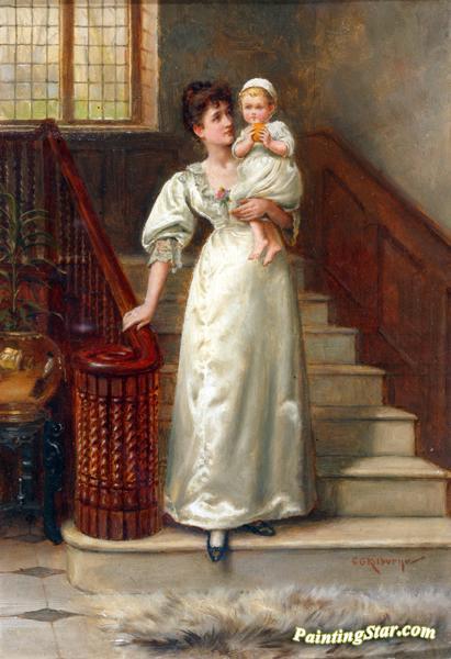 On the Staircase, Art Painting by George Goodwin Kilburne
