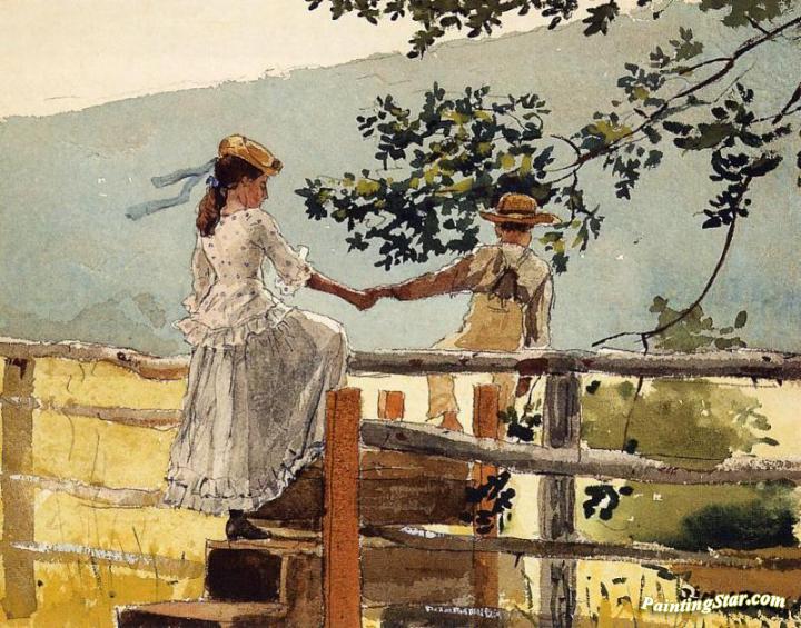 On the Stile, Art Painting by Winslow Homer