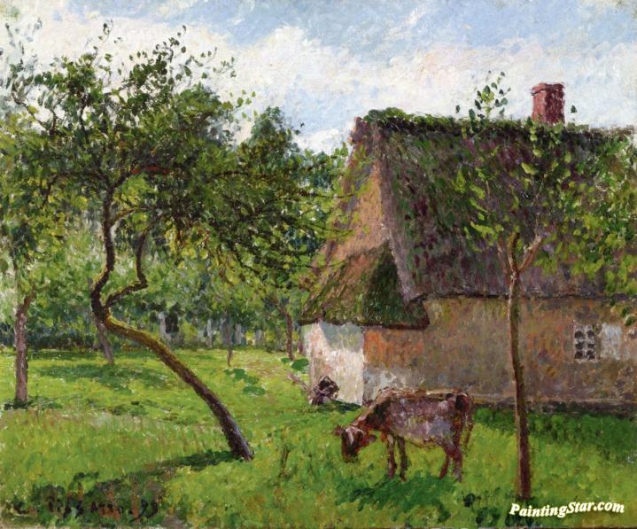 Orchard at Varengeville with Cow, Art Painting by Camille Pissarro