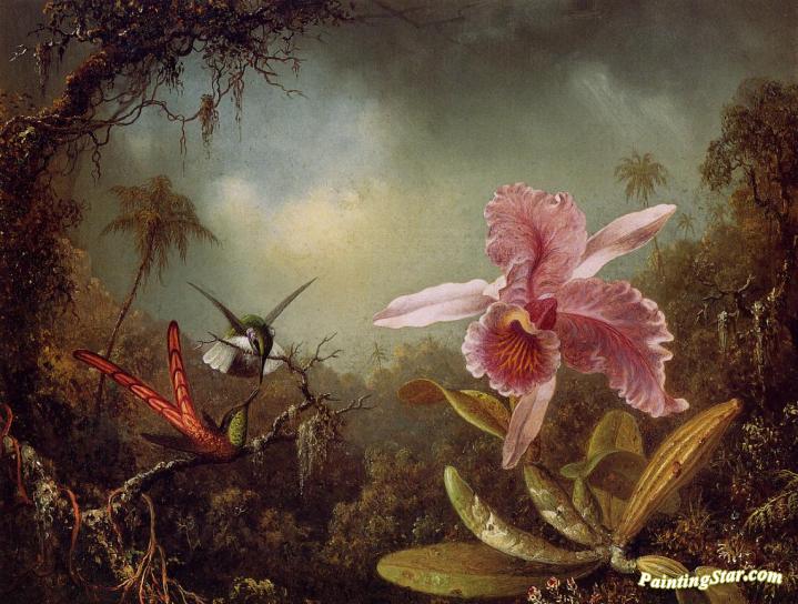Orchid With Two Hummingbirds, Art Painting by Martin Johnson Heade
