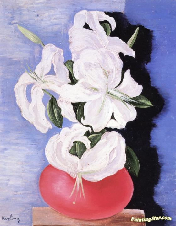 Orchids in a Pink Vase, Art Painting by Moise Kisling
