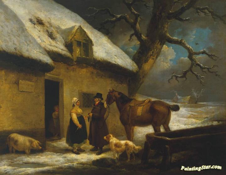 Outside an Inn, Winter, Art Painting by George Morland
