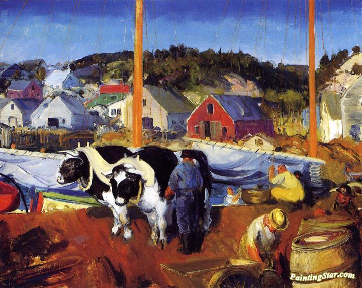Ox Team, Wharf at Matinicus, Art Painting by George Wesley Bellows