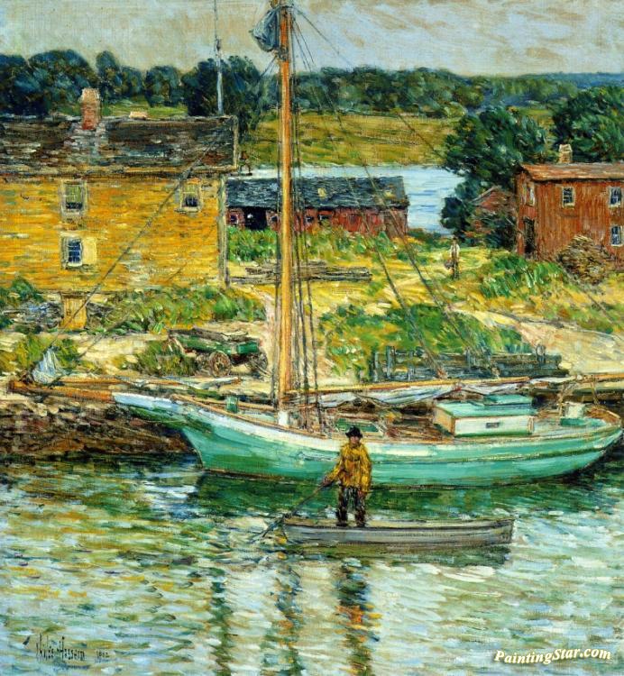 Oyster Sloop, Cos Cob, Art Painting by Frederick Childe Hassam