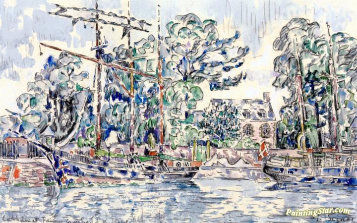 Paimpol, the Fanny Crossfield and the Cathrin at Dock, Art Painting by Paul Signac