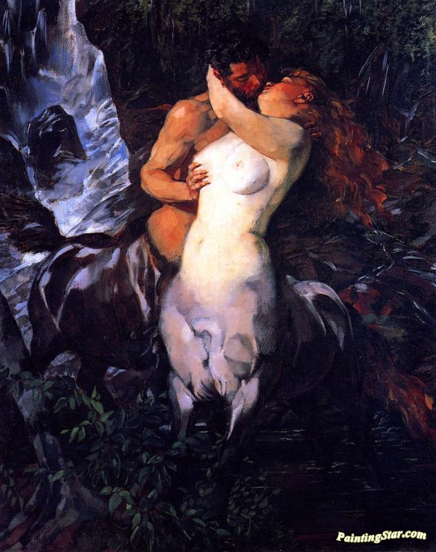 Pair Of Centaurs At A Waterfall, Art Painting by Wilhelm Trübner