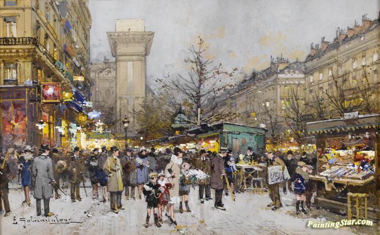 Paris Porte Saint-denis, Art Painting by Eugene Galien-Laloue