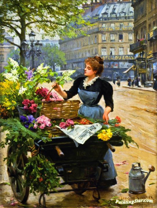 Parisian Flower Seller, Art Painting by Louis Marie De Schryver