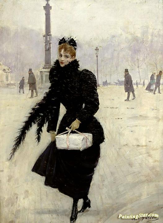 Parisienne, Place de la Concorde, Art Painting by Jean Georges Beraud