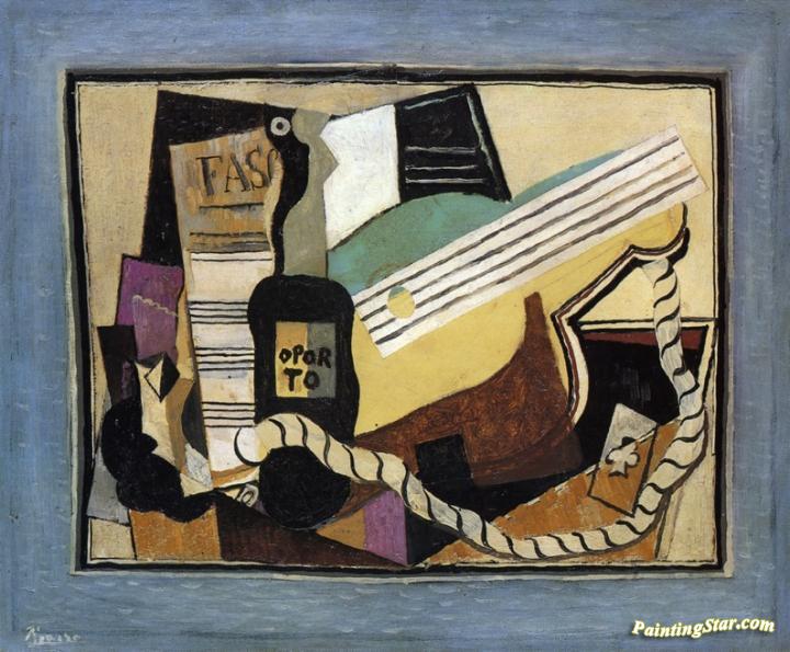 Partition, Bottle of Port, Guitar, Playing Cards, Art Painting by Pablo Picasso