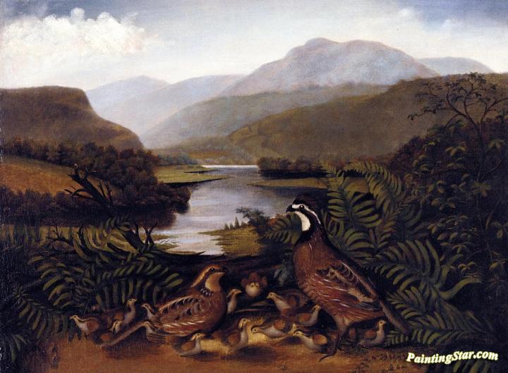 Partridges In A Landscape, Art Painting by Rubens Peale