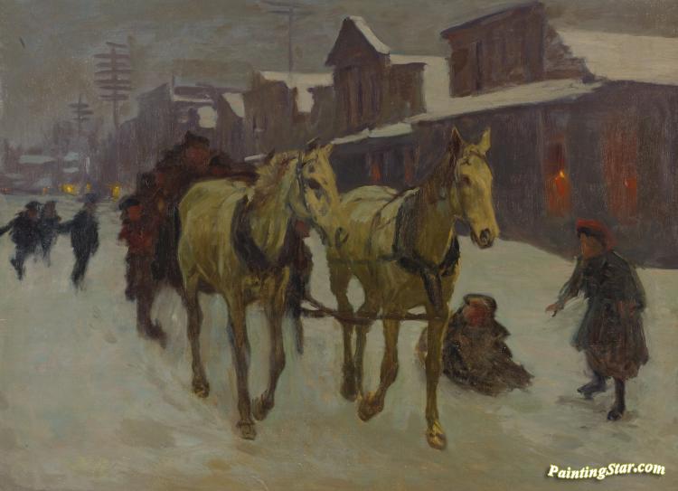 Passing Through Town On A Cold Winter's Night, Art Painting by Richard Lorenz