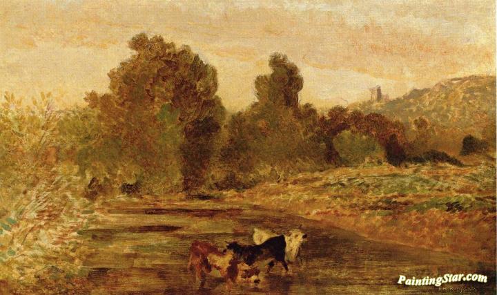 Pasture Land by Water, Art Painting by Théodore Rousseau