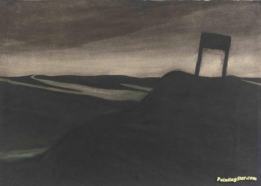 Paysage Nocturne, Poteau De Signalisation, Art Painting by Leon Spilliaert