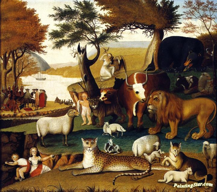 Peaceable Kingdom With The Leopard Of Serenity, Art Painting by Edward Hicks