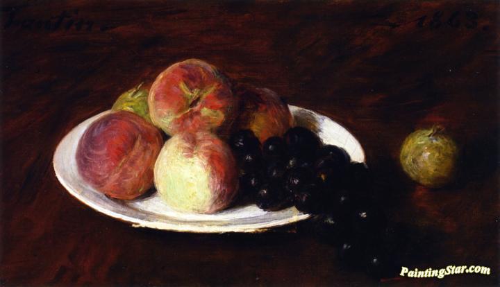 Peaches and Grapes on a White Plate, Art Painting by Henri Fantin-Latour