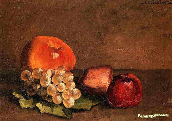 Peaches, Apples and Grapes on a Vine Leaf, Art Painting by Gustave Caillebotte