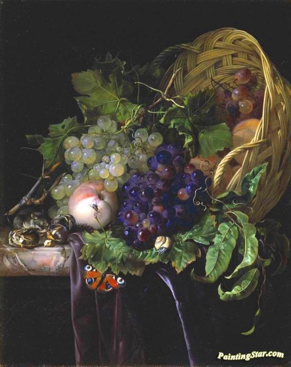 Peaches, Chestnuts and Grapes in an Overturned Basket, Art Painting by Willem van Aelst