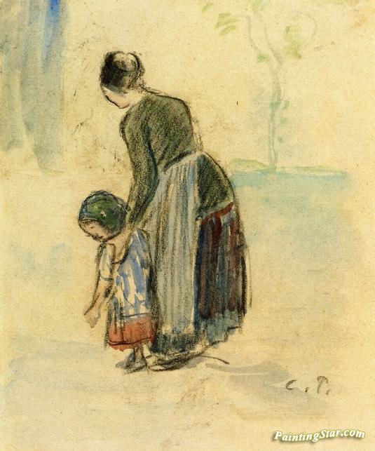 Peasant and Child, Art Painting by Camille Pissarro