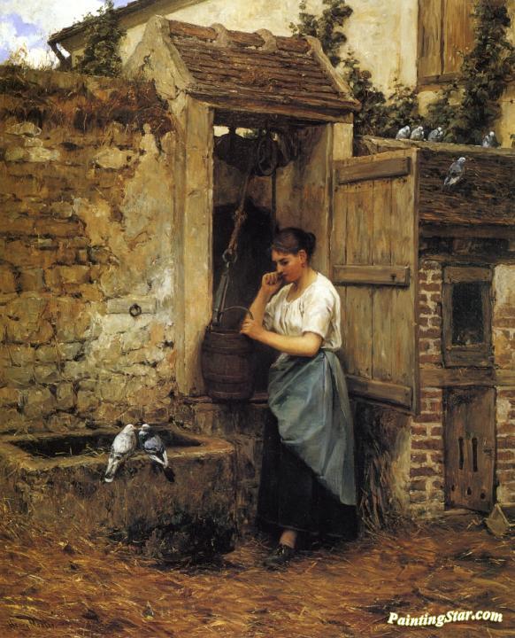 Peasant Girl And Doves, Art Painting by Henry Mosler