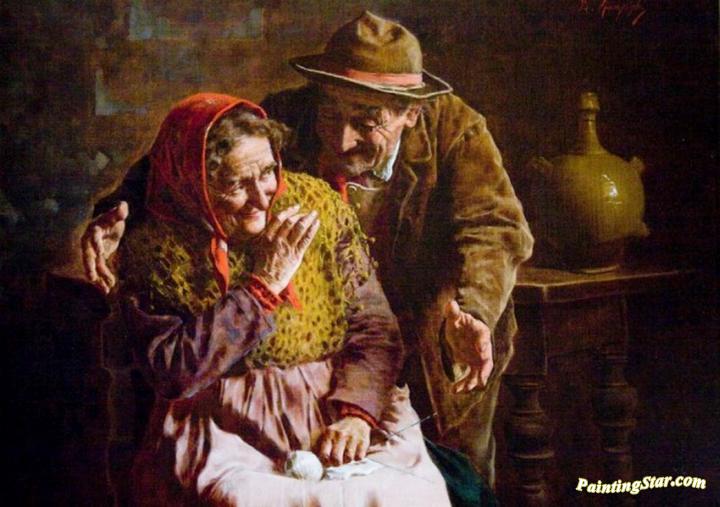 Peasant man and woman, Art Painting by Eugenio Zampighi