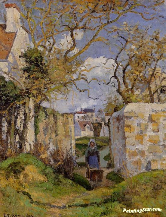 Peasant Pushing a Wheelbarrow, Maison Rondest, Pontoise, Art Painting by Camille Pissarro