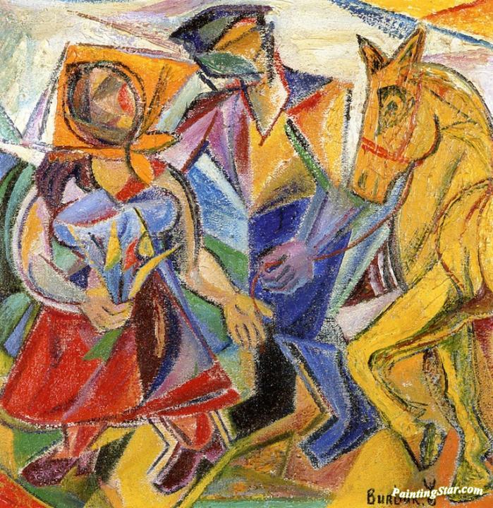 Peasants and Horse, Art Painting by David Davidovich Burliuk