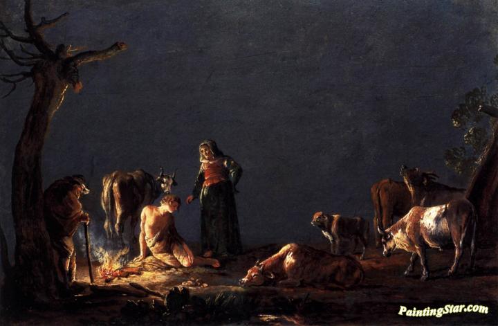 Peasants By A Fire, Art Painting by Leonaert Bramer