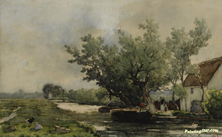 Peasants Near A Farmhouse In A Polder Landscape, Art Painting by Jan Weissenbruch