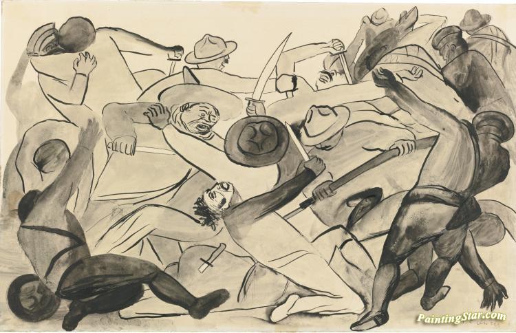 Pelea Con Machetes, Art Painting by Jose Clemente Orozco