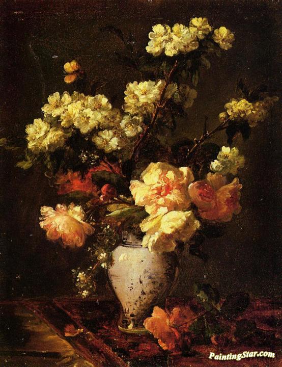 Peonies and Apple Blossoms in a Chinese Vase, Art Painting by Antoine Vollon