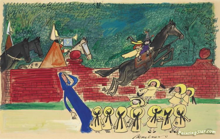Pepito Gets Mounted, And Madeline With Him, Art Painting by Ludwig Bemelmans
