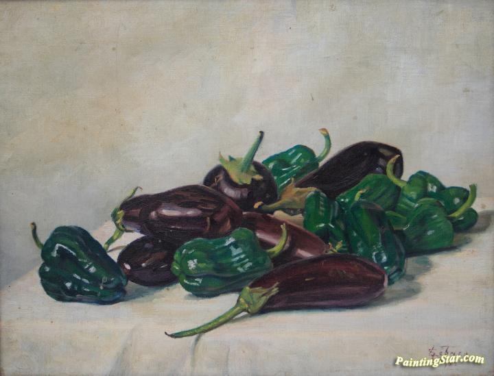 Peppers and eggplants, Art Painting by Georges Emile Lebacq