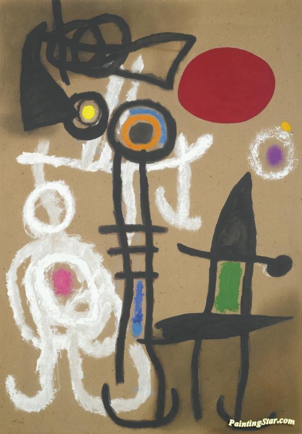Personnages Et Oiseaux Devant Le Soleil, Art Painting by Joan Miró