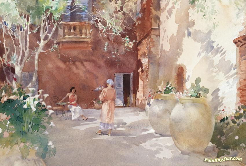 Petit Dejeuner, The Terrace Of The Hotel Sullie, St. Tropez, Art Painting by Sir William Russell Flint