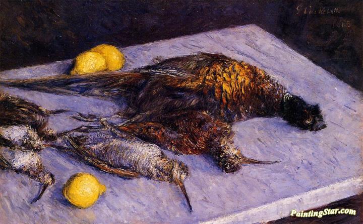 Pheasants and Woodcocks on a Marble Table, Art Painting by Gustave Caillebotte