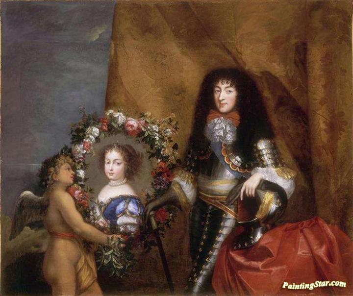 Philippe Of France With His Favourite Daughter Marie Louise, Art Painting by Pierre Mignard