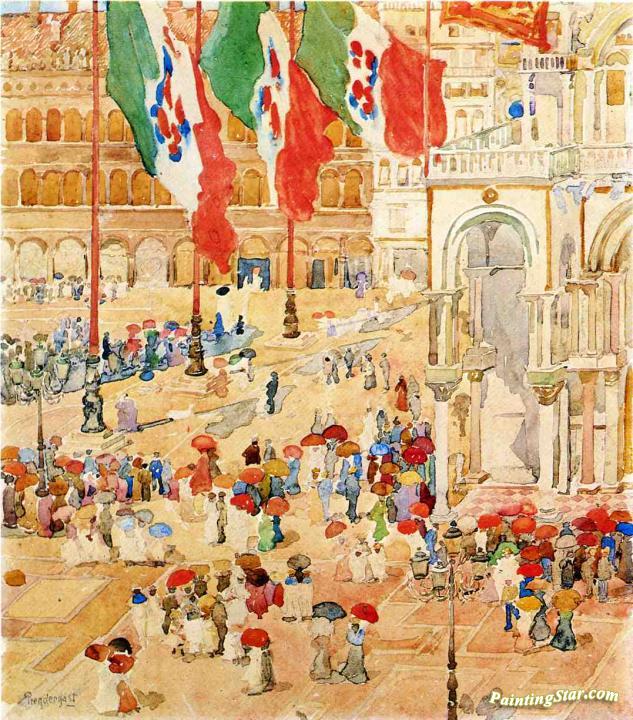Piazza of St. Marks, Art Painting by Maurice Prendergast